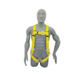 – Anillos tipo D: Fabricados en acero forjado, ubicados a nivel de la cintura, uno en el pecho y uno en la espalda con hebilla de