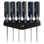 – Destornilladores de 6 tamanos populares cada uno con puntas magnéticas y mangos extra