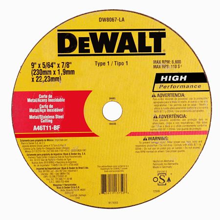 Disco abrasivo 9 x 5/64 x 7/8 corte de metal