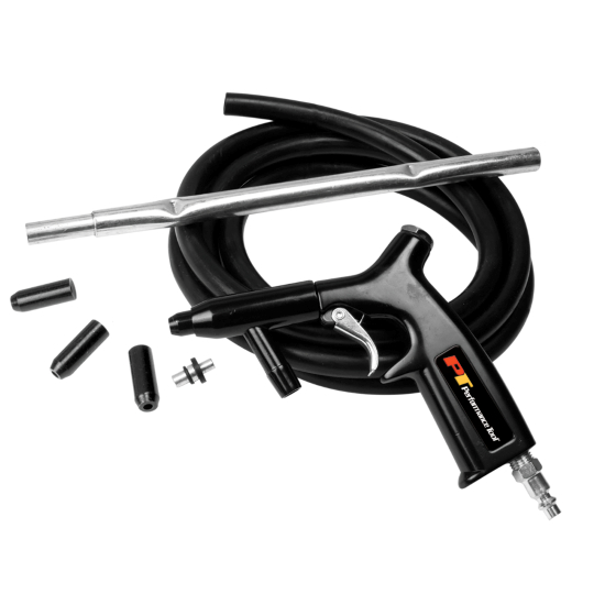 – La manguera de 10 pies extrae varios tipos de abrasivos del balde o