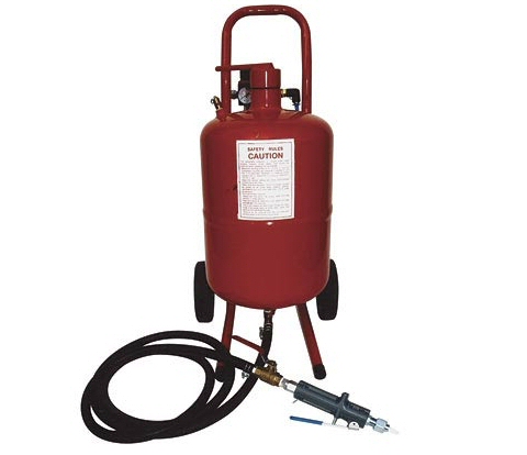 – Incluye: Sandblaster, pistola Deadman II, manguera 8′, manómetro de presión, regulador,