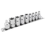 Sockets para puntas estrella 9 pzas,1/4 y 3/8″